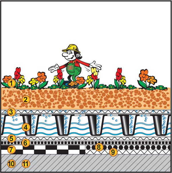 | Gefälleart/ Wasserspeicher: | ≥0% - ≥6 l Wasserspeicher/m² |