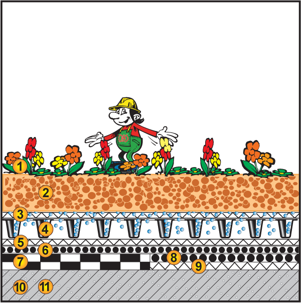 | Gefälleart/ Wasserspeicher: | ≥2% - ≥3,5 l Wasserspeicher/m² |