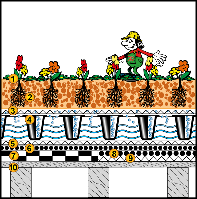 | Gefälleart/ Wasserspeicher: | ≥0% - ≥6 l Wasserspeicher/m² |