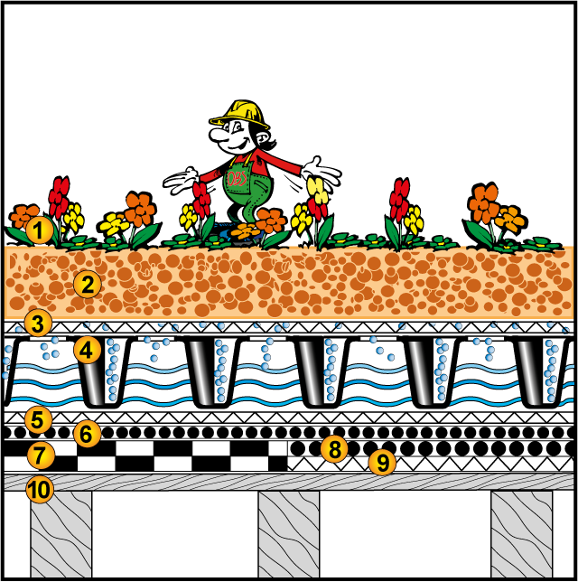 | Gefälleart/ Wasserspeicher: | ≥0% - ≥6 l Wasserspeicher/m² |