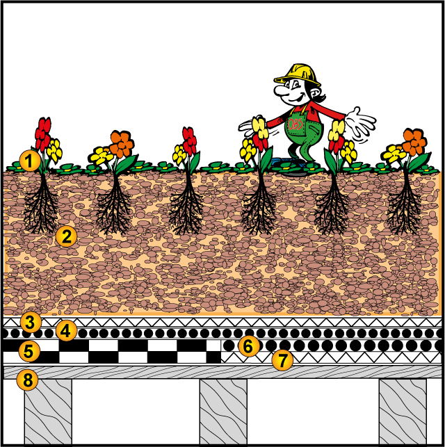 | Dämmung: | keine | Vegetationstragschicht: | Extensivsubstrat-Einschicht |