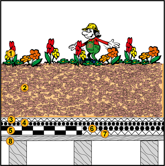 | Dämmung: | keine | Vegetationstragschicht: | Extensivsubstrat-Einschicht |