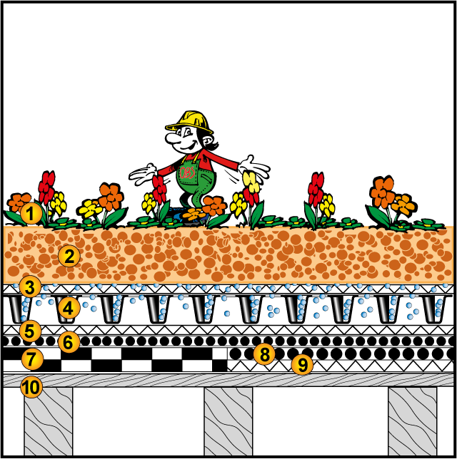 | Gefälleart/ Wasserspeicher: | ≥2% - ≥3,5 l Wasserspeicher/m² |