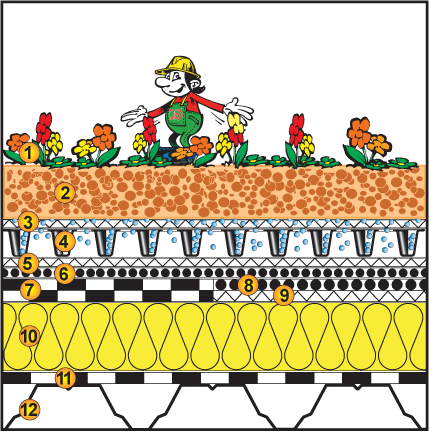 | Gefälle: | in Decke / 2% | Wasserspeicher ohne Substrat ca.: | 3 Liter/m² |