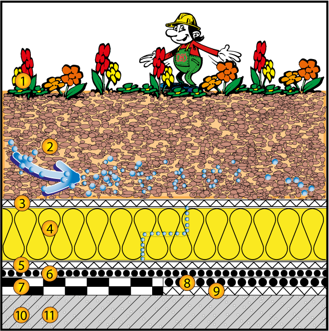 | Wurzelschutz: | ja | Vegetationsschicht: | Sedum, Kraut, Gras |