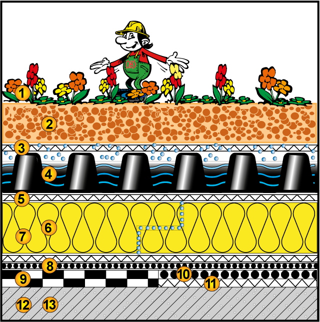 | Gefälleart/ Wasserspeicher: | ≥0% - ≥20 l Wasserspeicher/m² |