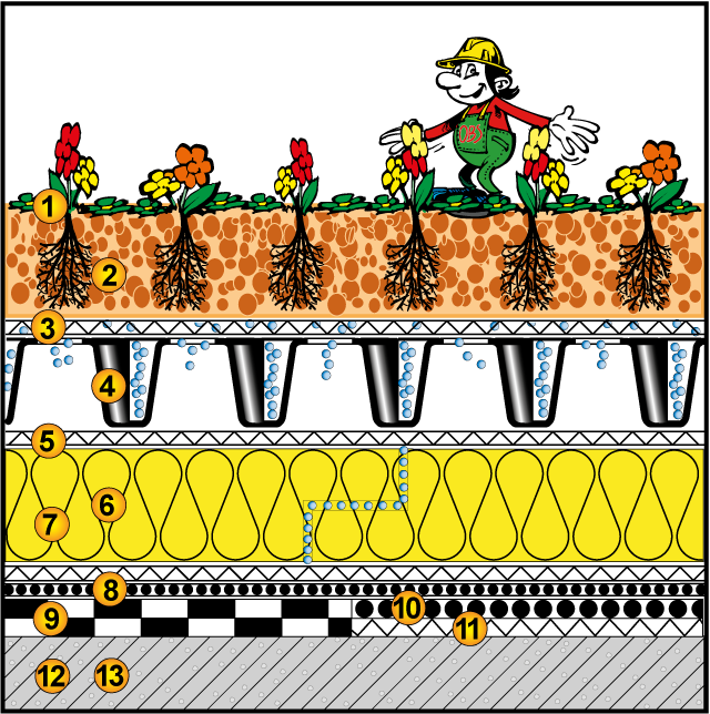 | Wurzelschutz: | ja | Vegetationsschicht: | Sedum-Pflanzen |