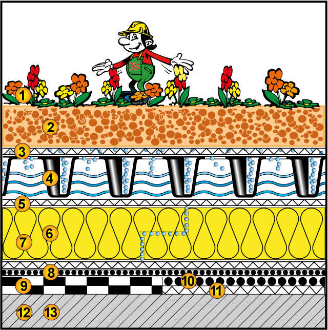 | Gefälleart/ Wasserspeicher: | ≥0% - ≥6 l Wasserspeicher/m² |