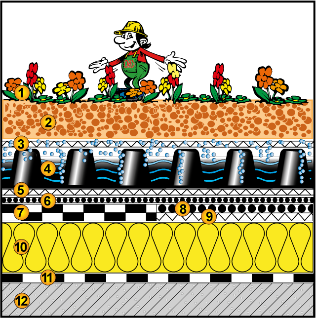 | Wurzelschutz: | ja | Vegetationsschicht: | Sedum, Kraut/Gras |