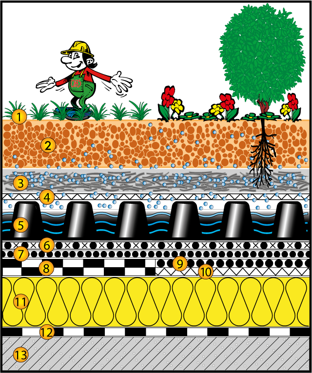 Produktinformationen "Gründach intensiv, Warmdach, ab 0%° Gefälle, 60 Liter Wasserspeicher/m² "