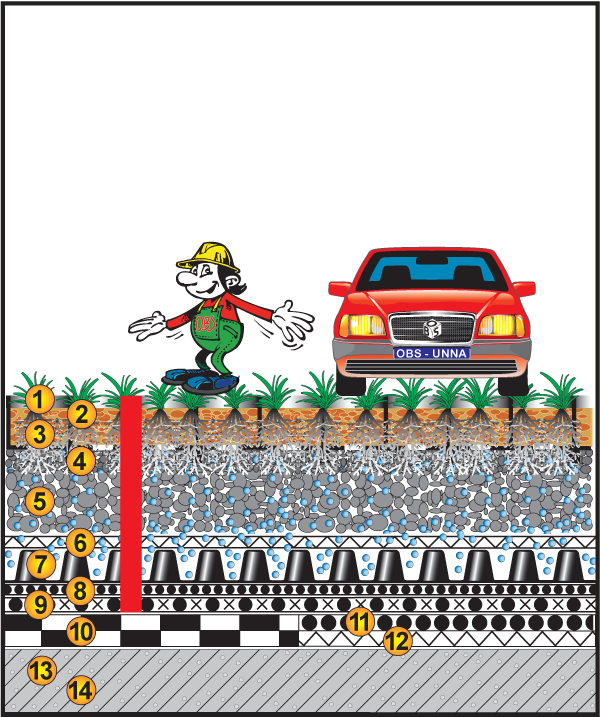 Produktinformationen "Dach befahrbar-PKW, ≥2,5%, Schotter, Rasenschutzwaben"